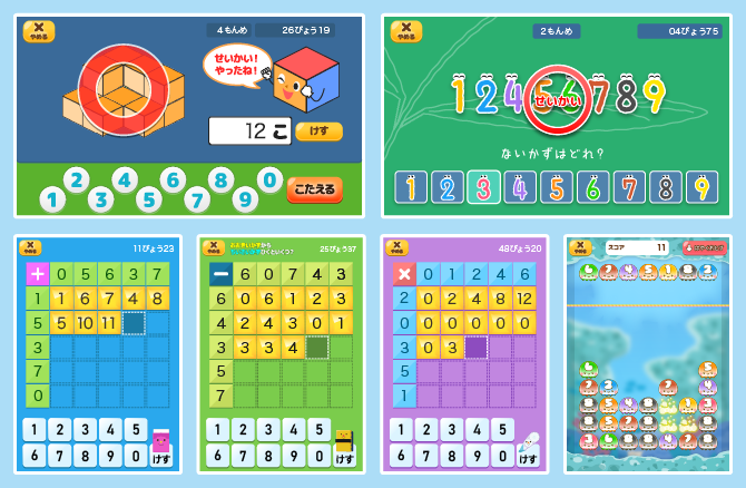 計算・分析・文字認識・言語・音感・立体認識・記憶・色認識・図形認識・動体視力など様々な角度で遊びながら、小さな未就学児童から低学年・中学年の子どもたちの知育教育をサポートいたします。iPad、Androidタブレットを利用したアプリ版とGIGA スクールで1人1台配布されたPC を使った web 対応版の2種を販売しています。
